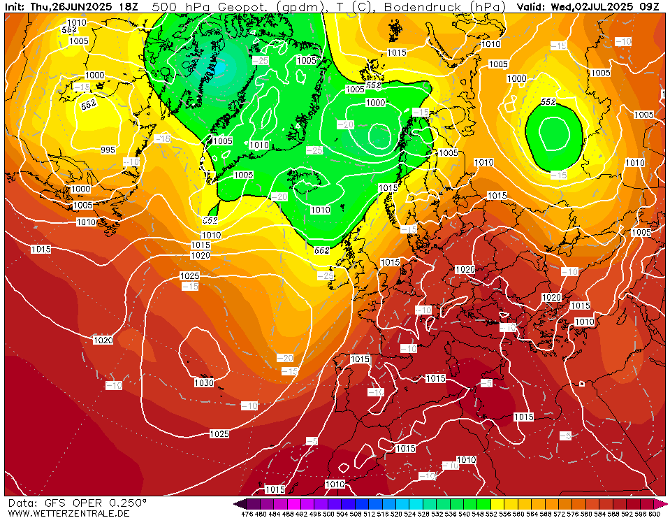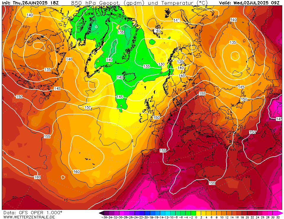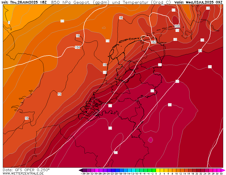 Oper GFS2618 - woensdag eind van de ochtend T850 tot 23°C