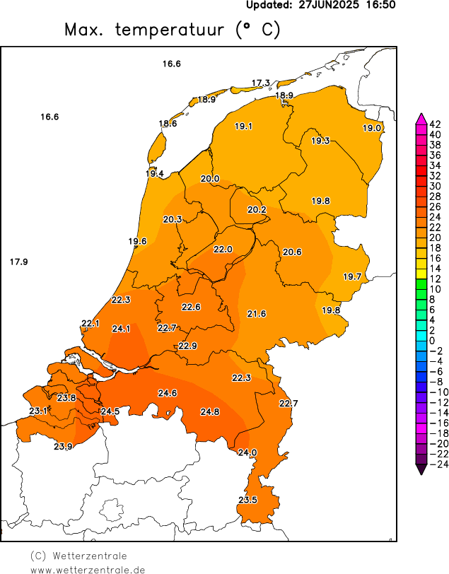 Opvallend genoeg heeft Maastricht Airport al wel een maximum van 23,5 graden genoteerd vandaag...