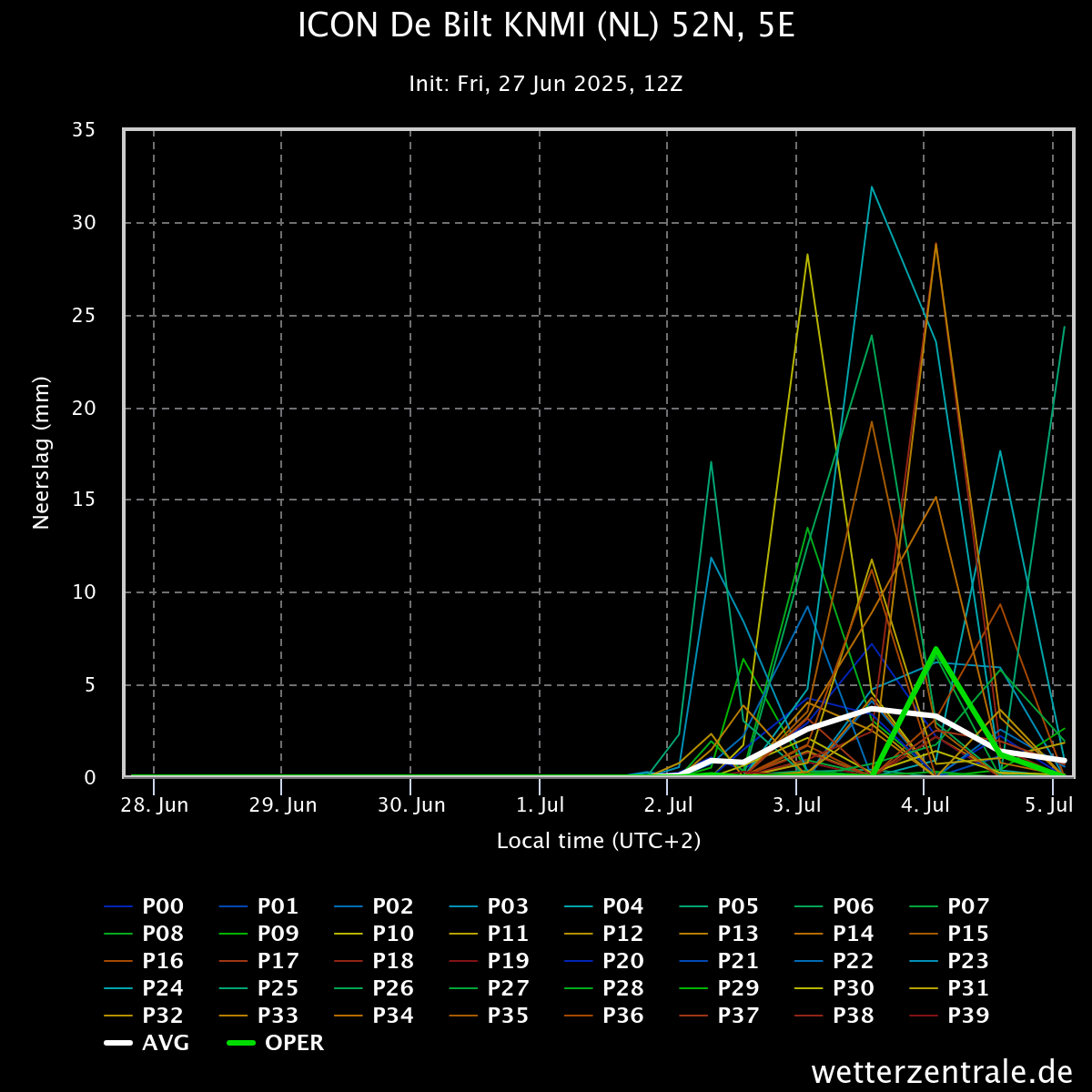 Veel neerslagsignalen rond 3 juli.
