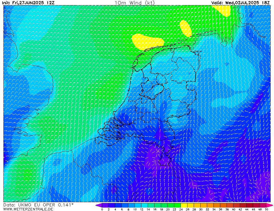 Direct aan de kust en vooral in het noordelijk kustgebied van NL wel wat verkoeling gok ik zo. Neerslagkaarten niet beschikbaar in deze run, maar je zou haast zeggen dat deze samenspel van koelere & hete luchtmassa's tenminste iets van buien zou moeten produceren ...