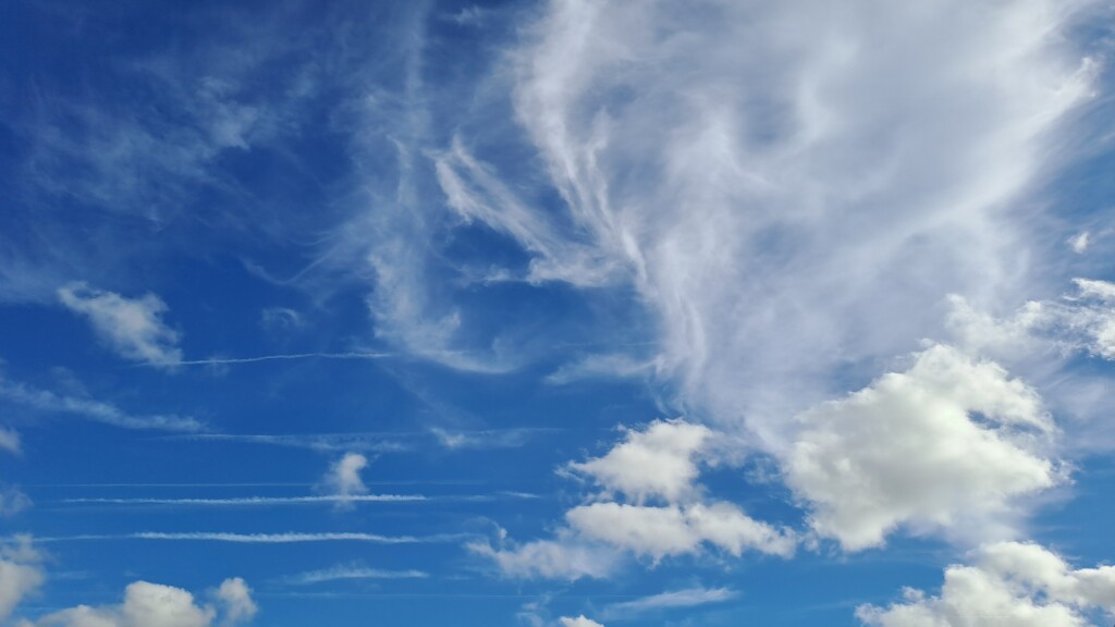 Hier nog een paar vliegtuigstrepen. Verder helder. Straks maar..