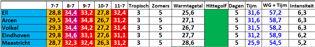 Ben benieuwd welk station de grootste intensiteit heeft. In 2023 waren er drie koplopers in de regionale hittegolf van 7 t/m 11 juli