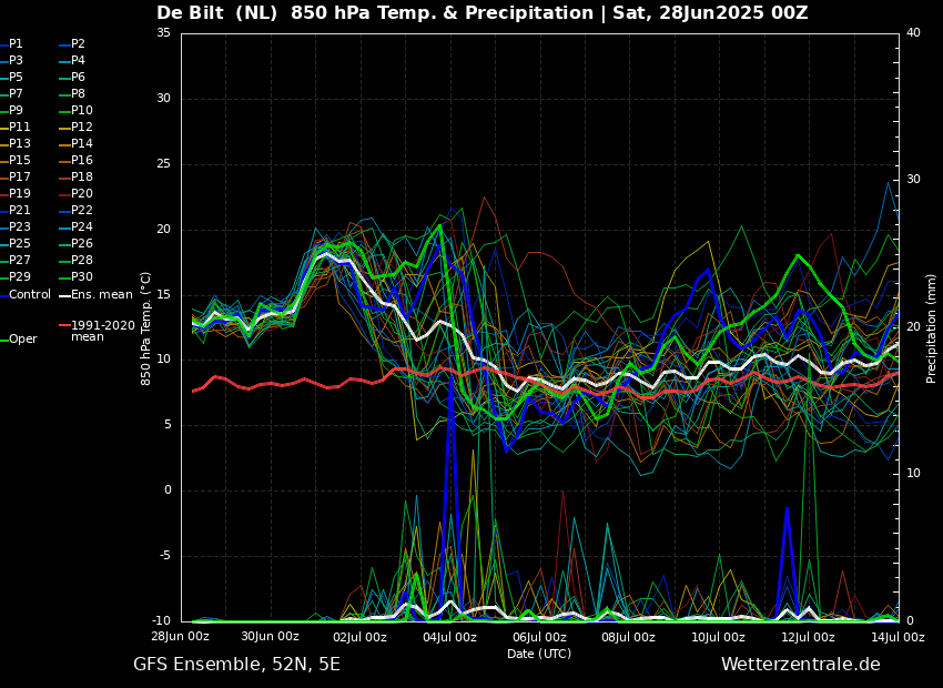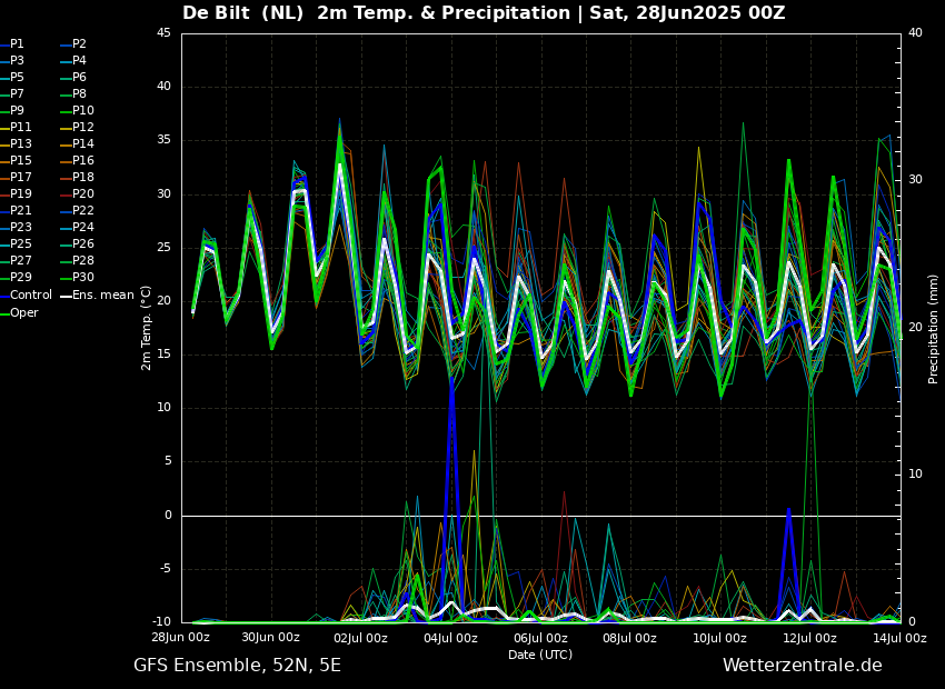 GFS 00Z toch redelijk wat leden die donderdag ook nog hitte berekenen