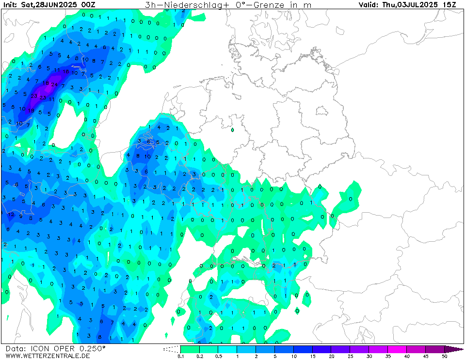 Donderdag volgt afkoeling met een buiencluster, waarna het koufront? doorkomt, lokaal tot 25 mm neerslag.