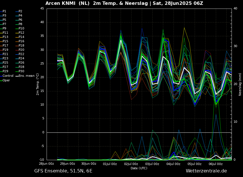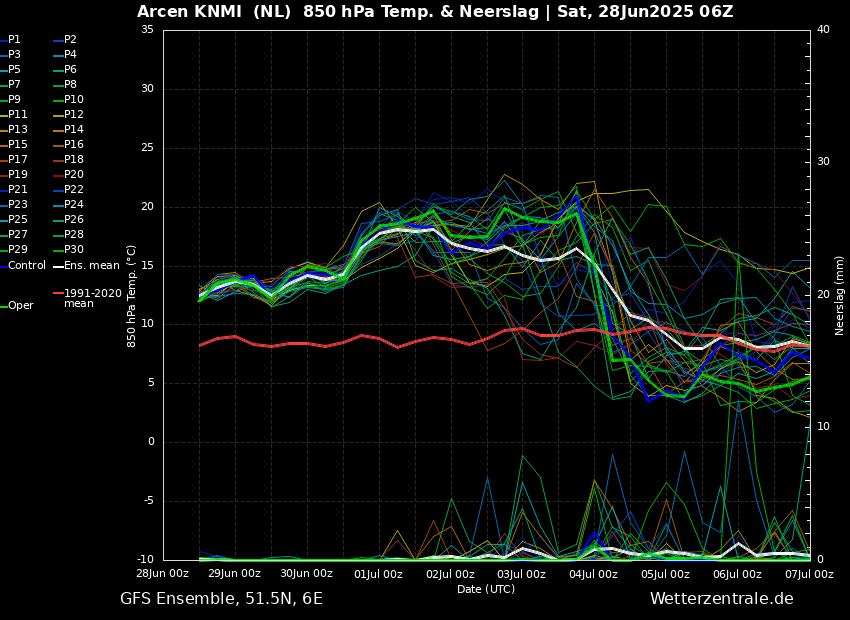 Veel leden laten het op woensdag en vooral donderdag ook zeer heet worden terwijl andere menbers het op woensdag al flink koeler laten worden. Toch een ontwikkeling om in de gaten te houden. Zelfs vrijdag nog enkele extreem warme leden voor deze regio.