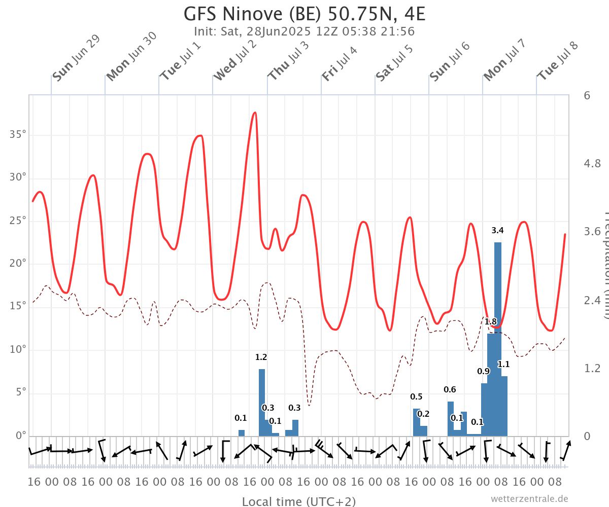 3 daagjes doorbijten en vanaf donderdag in lijn met de andere modellen. Vooral begin volgende week heet. Bij ICON volgt op donderdag ook een mooie afkoeling. En bij GEM12 lijkt dinsdag de warmste dag. Voor vandaag zat GFS toch 4 graden te hoog. Het kwam met 29 graden en uiteindelijk werd het 24,9 graden