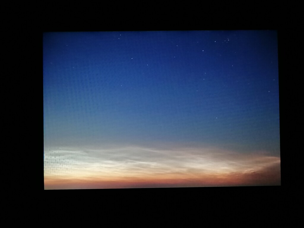 Het begon klein maar uiteindelijk werd het een mooi display met flink wat structuren en kleuren. Terwijl het display naar het westen bewoog viel op dat de lichtende nachtwolken ook nog helderder werden. Opvallend dit seizoen is de lage stand boven de horizon. Het leek erop dat de NLC van ver kwamen deze keer.