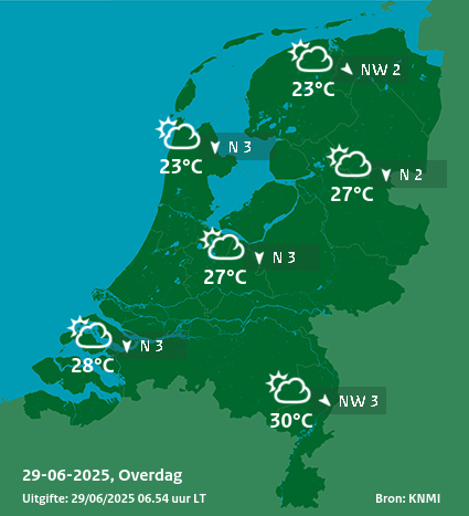 zulke temperaturen bij een noorden wind. Hier (nog) zonnig, hooguit verspreid wat middelbare bewolking.
