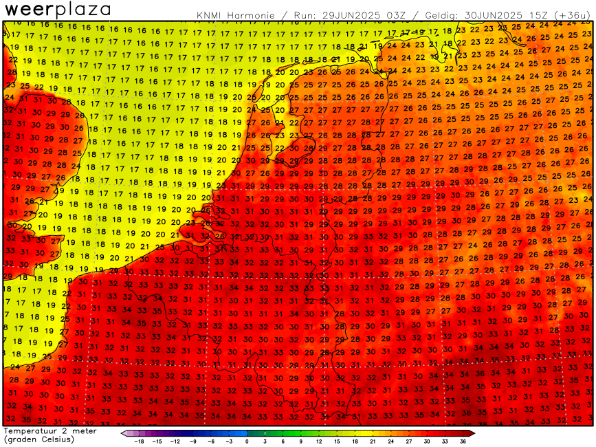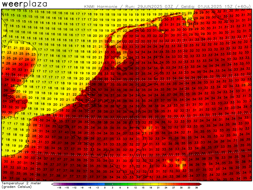 De dinsdag ziet er fors uit, en dan te bedenken dat veel weermodellen de hoogste temperaturen voor het binnenland pas op woensdag laten zien (meestal 1-3°C hoger).