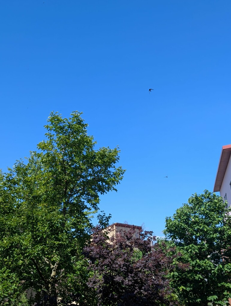 Hier zo goed als onbewolkt. 1 klein wolkje te zien achter de bomen. Op de satellietbeelden zie je richting het westen wat meer wolken ontstaan. Tact 25,7 °CSensor in de schaduw 23,5°CRV: 67%