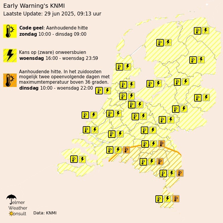 Experimentele kaart inclusief Early Warning voor dinsdag & woensdag.