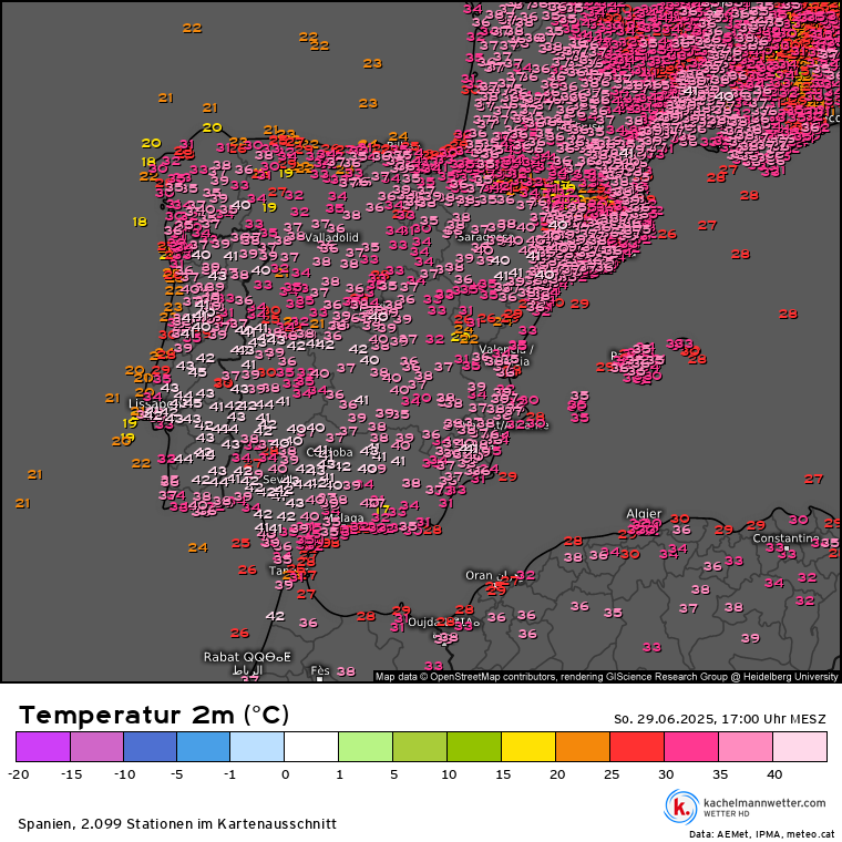 In het noorden was het ietsje minder warm, maar toch ook nog boven de 35°C op veel plaatsen.