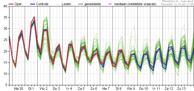 En wij zitten een beetje op de grens met regio west, die is nog wel tropisch op woensdag, gemiddeld: