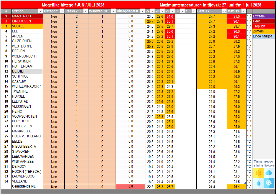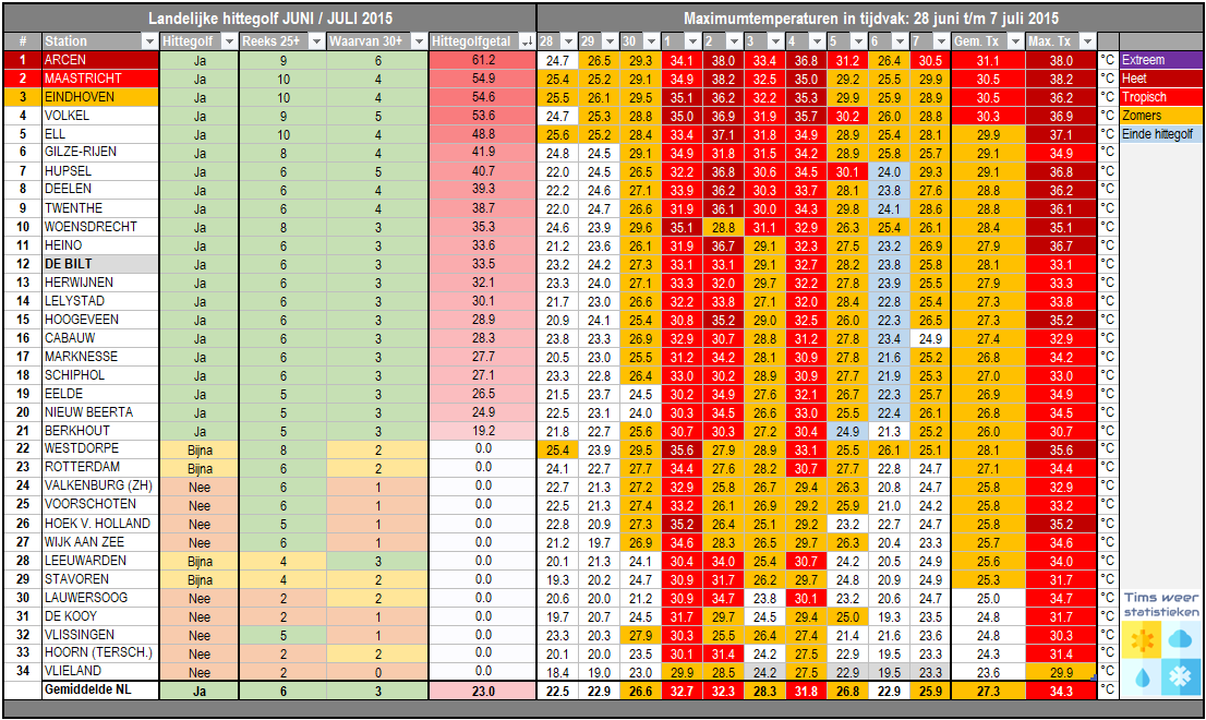 Hieronder ook nog de hittegolfstatistieken vanaf 2010 + de juni/juli hittegolf van 2015 toegevoegd... mooi vergelijkingsmateriaal lijkt me zo