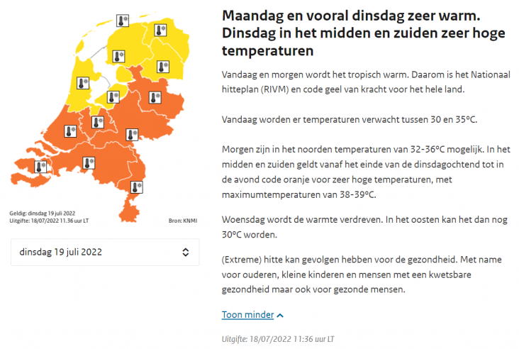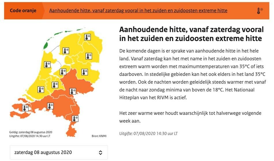 In vorige code oranje-situaties werden er veelal nachtelijke minimumtemperaturen genoemd van 18-20°C. Nu worden er nachtelijke minimumtemperaturen genoemd van 20-25°C in het zuidoosten van Nederland en in steden.