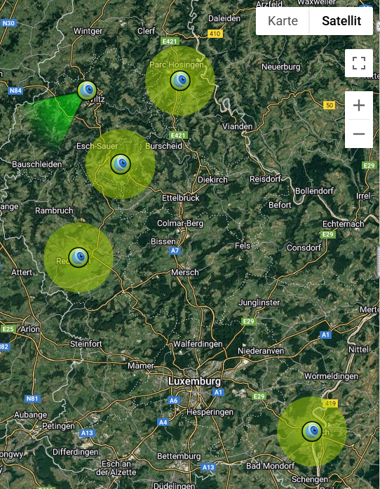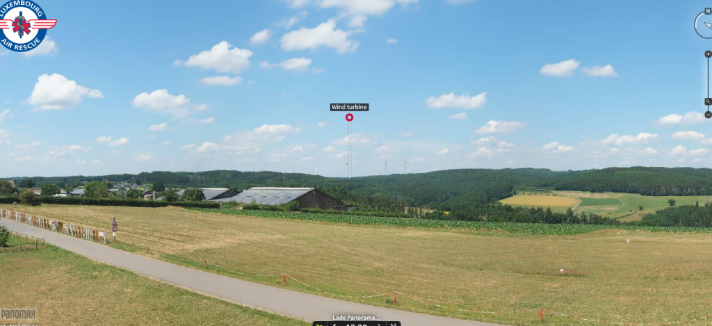 De Luxembourg Air Rescue, een medische nooddienst die onder andere gebruik maakt van reddingshelicopters, beschikt tegenwoordig ook over een klein netwerk van langzaam ronddraaiende webcams met bijna vrij zicht op de horizon, op vijf gebruikte vliegveldjes. Een daarvan is vlak bij mij in Noertrange, aan de noordkant van het rivierdal.