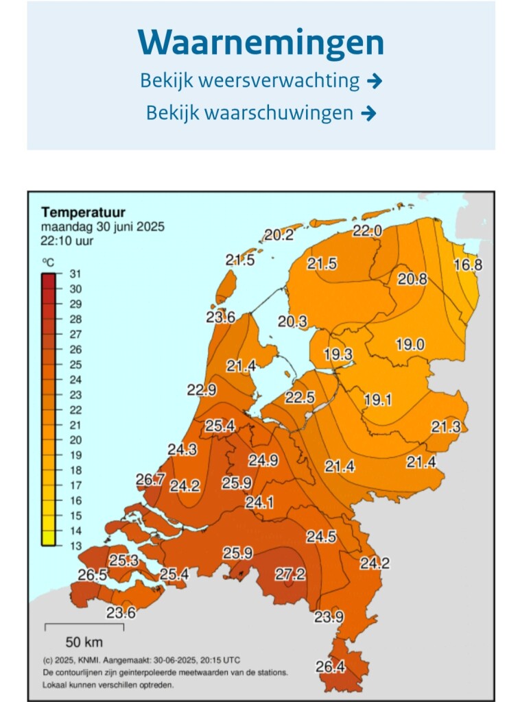 Onder andere Eindhoven met 27 geaden nog zomers warm is.