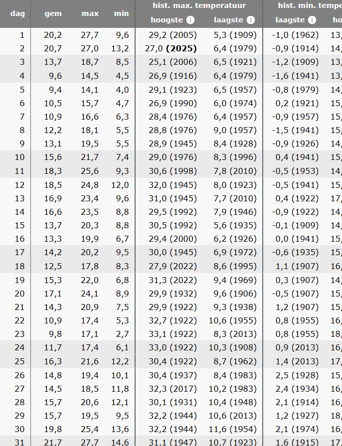 In 1922 alleen al 5 dagrecords. 1945 doet ook goed mee met 4 dagrecords