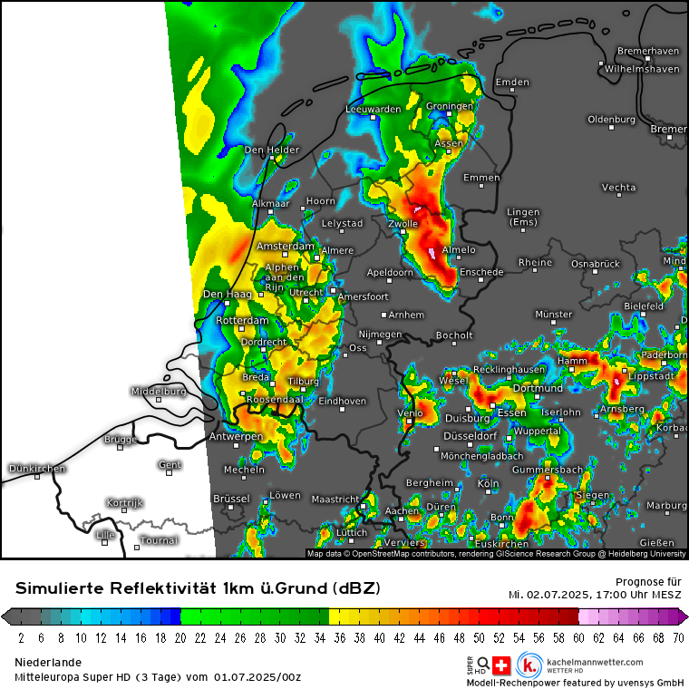 Swiss-HD 00Z geeft een wat andere oplossing over Nederland