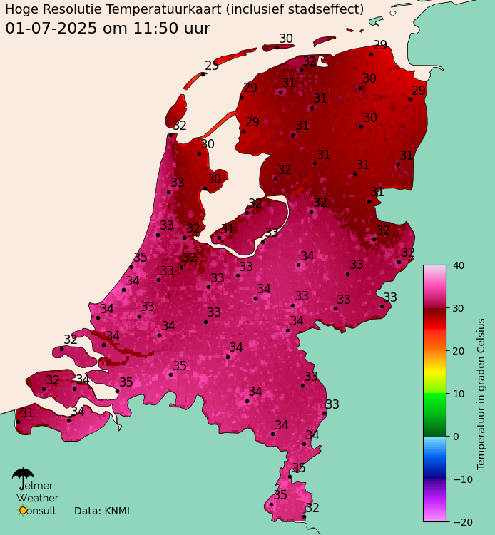 11:50 = 34.1C Woensdrecht, 31.5C De Bilt