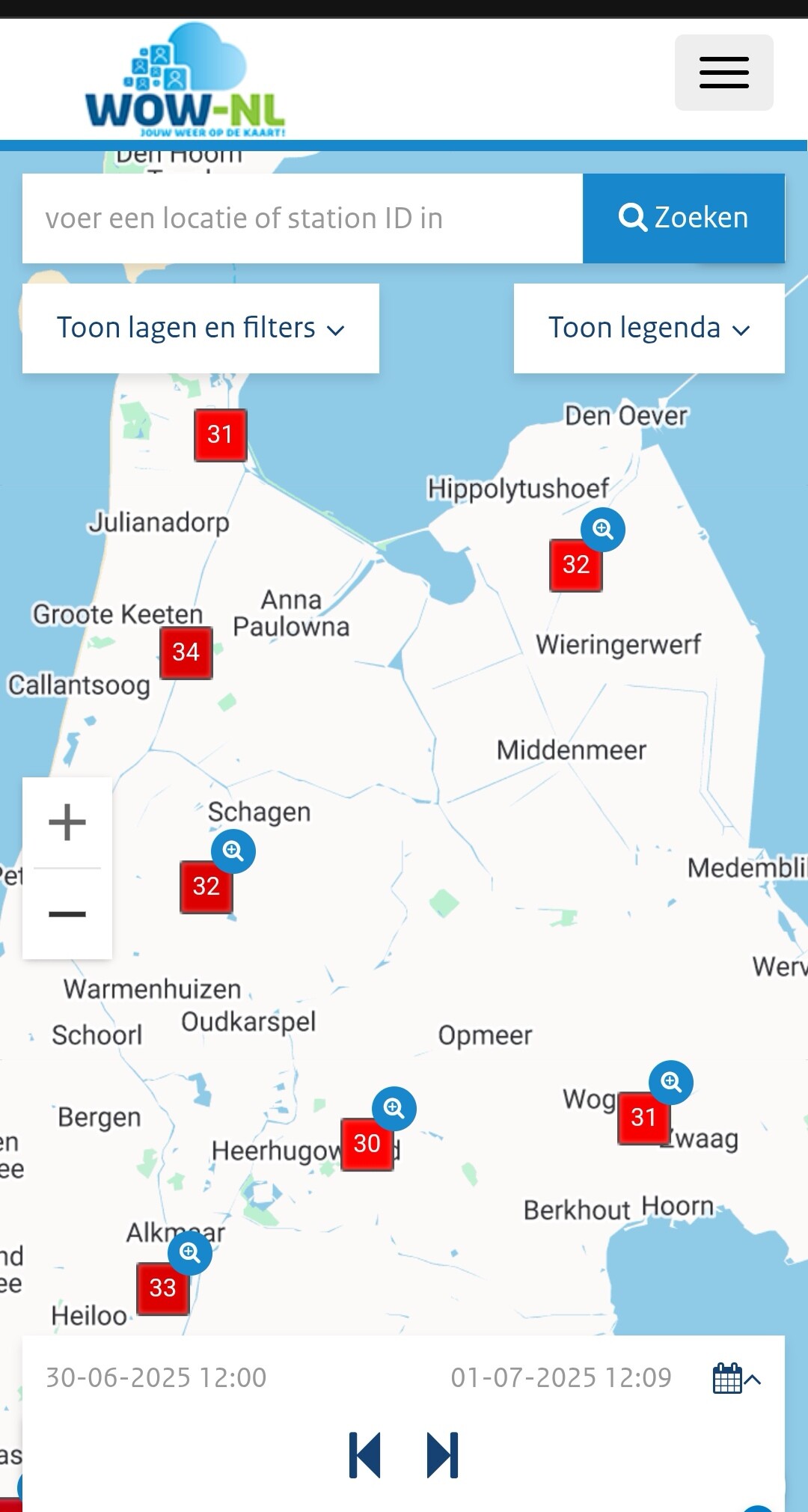 Schiedam actueel 33.4c, stijgende