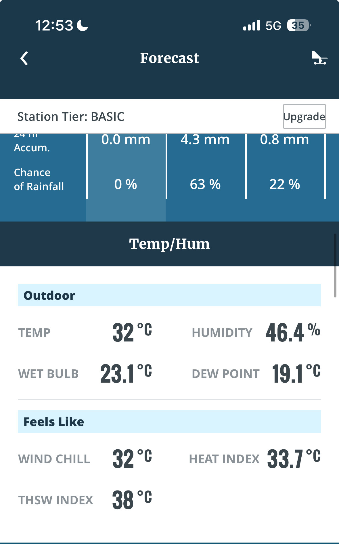 Geventileerde weerhut Tact 31,8, hut 2 zonde vent Tact 33,3 THSW 38,0!