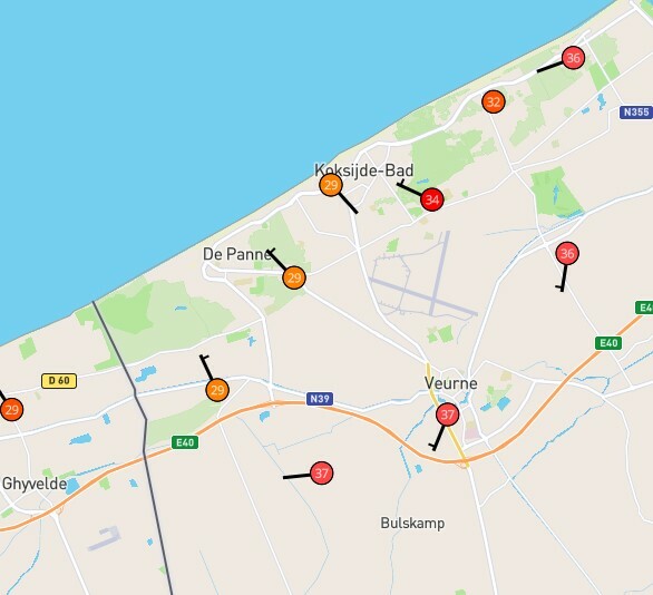 Brugge blijft momenteel hangen op 34.6°C; benieuwd of er nog iets bij