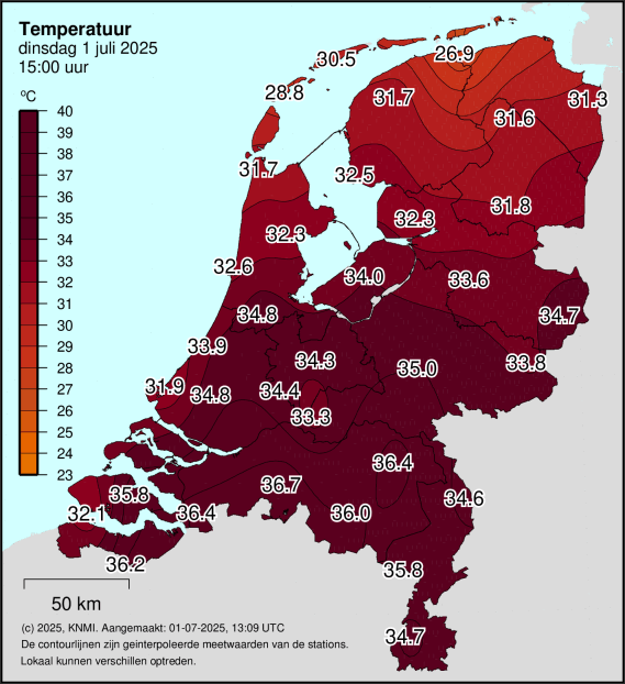 Slechts 0,3° verwijderd van de top 10 hoogste maxima in de volledige meetreeks op dat station. Tevens slechts 0,6° nodig voor 37,0°C.