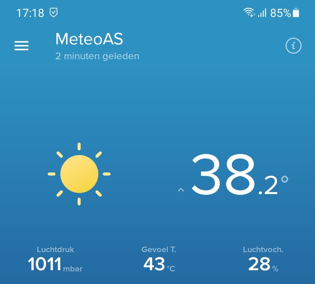 Hier nu al 2 uur lang 34,5 of 34,6 C.