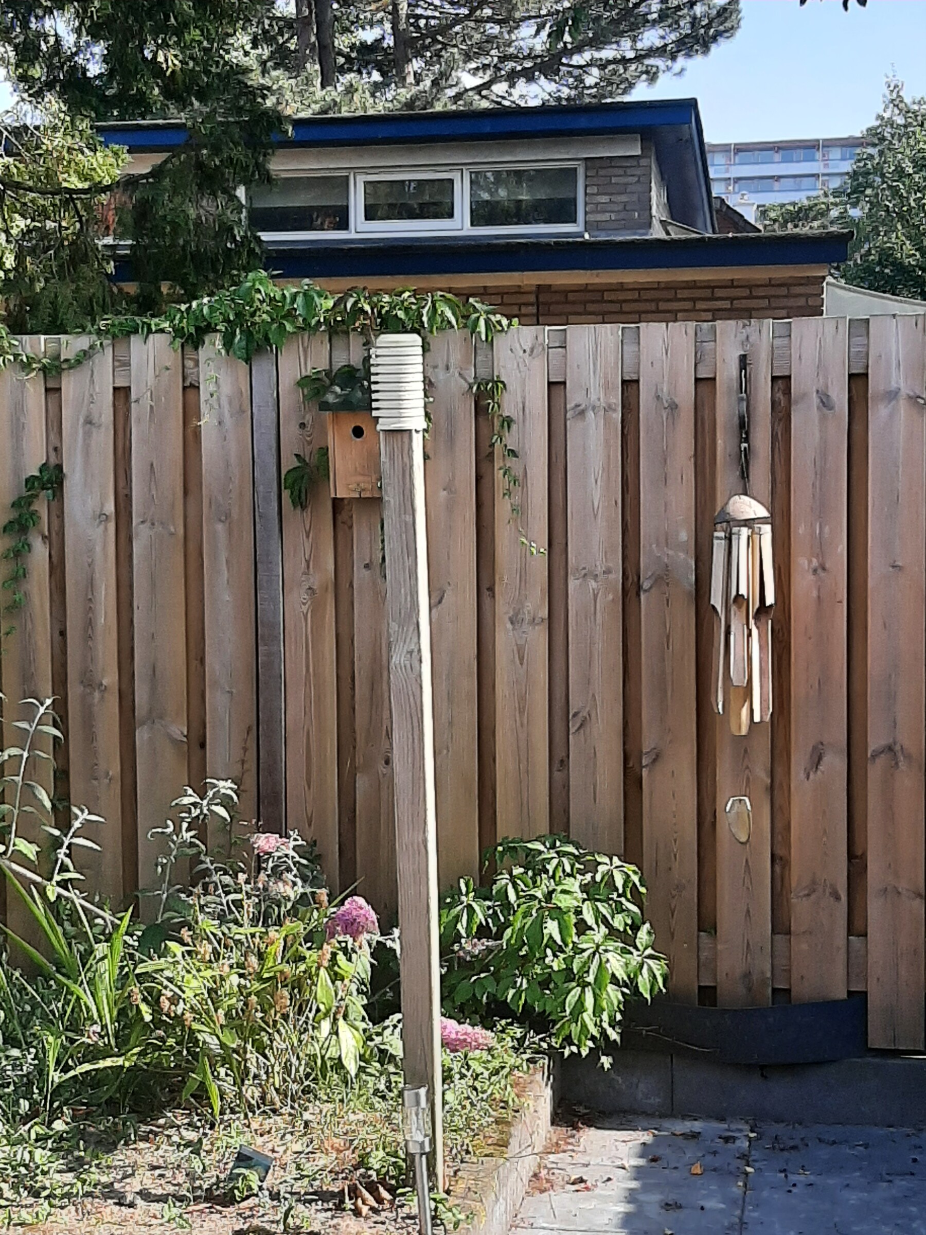Tact en Tmax 37.,3°c in groene (gesproeide) tuin.