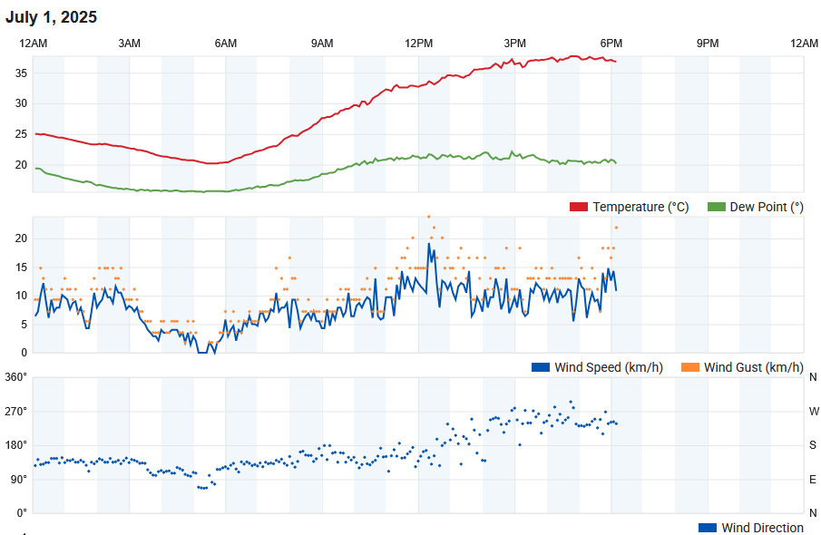 Hengelo-noord : Tx 37.3°C. | Tact 35.5°C.