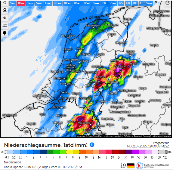 Dit is wel een kaliber van wateroverlast en kans op schade door (zeer) zware windstoten plaatselijk morgenavond. Dit gaat zeker een level 2 geven bij Estofex.