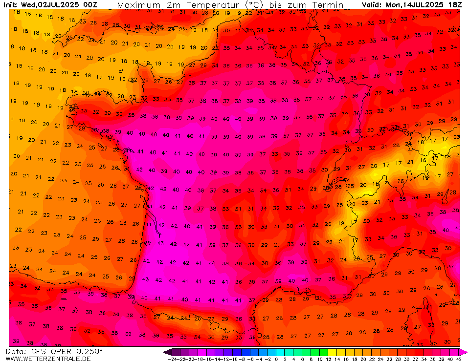 In Bordeaux (prachtige stad, vorig jaar geweest) kan het ook bijzonder heet worden, net als in Parijs. En daar is, anders dan bij ons, niet zoveel voor nodig. Hopelijk blijft het bij een aangename warmte (bijvoorbeeld 30 graden).