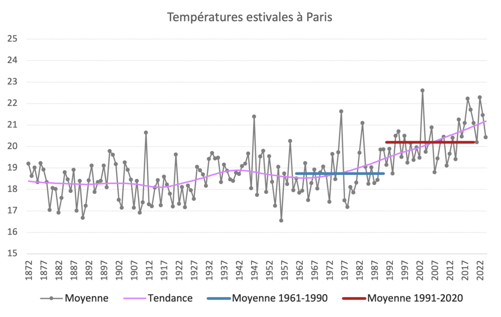Leuk dat je ook naar Frankrijk gaat! In Frankrijk warmen de zomers zeer sterk op. De gemiddelde maximumtemperatuur ligt, met de opwarmende trend meegerekend, op veel plaatsen 3 tot bijna 4 graden hoger dan in 1961-1990.