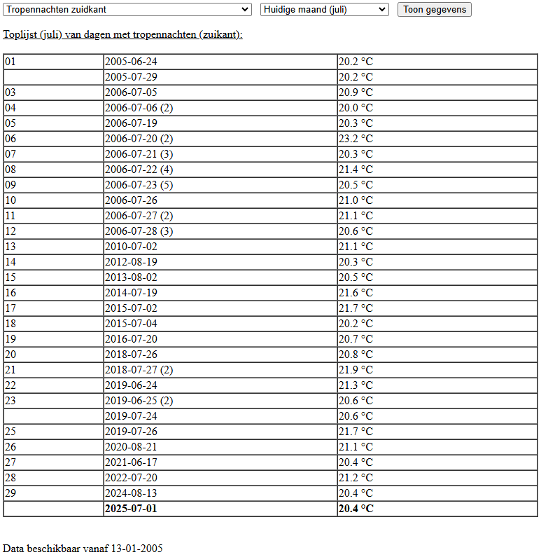 Verder beleefden we hier de 30e tropennacht in juli sinds de start van mijn weerstation.