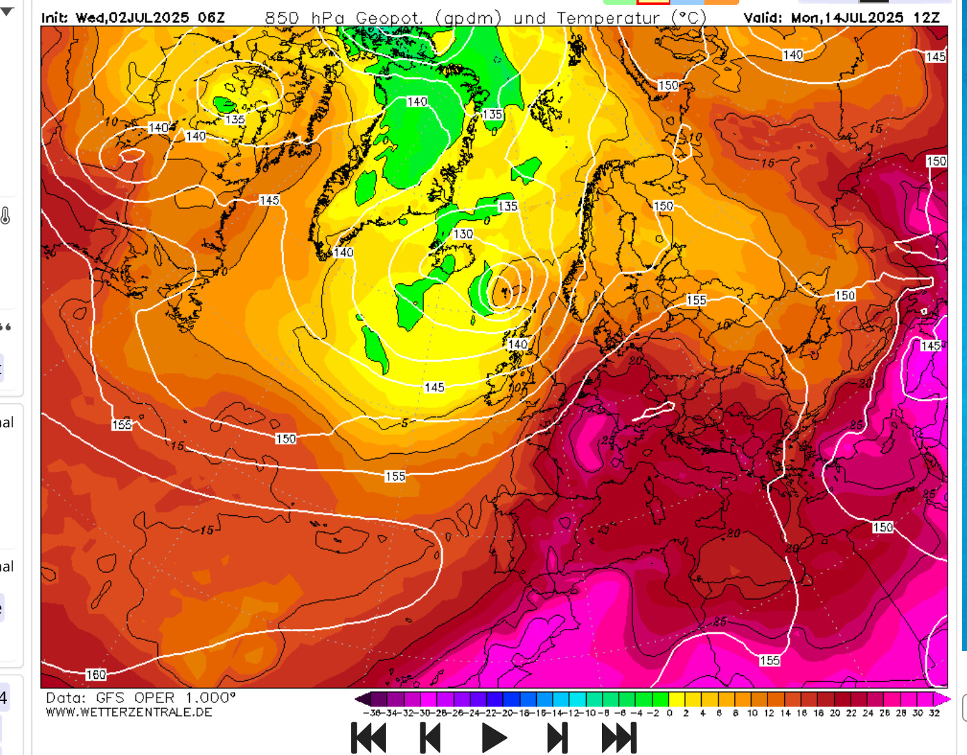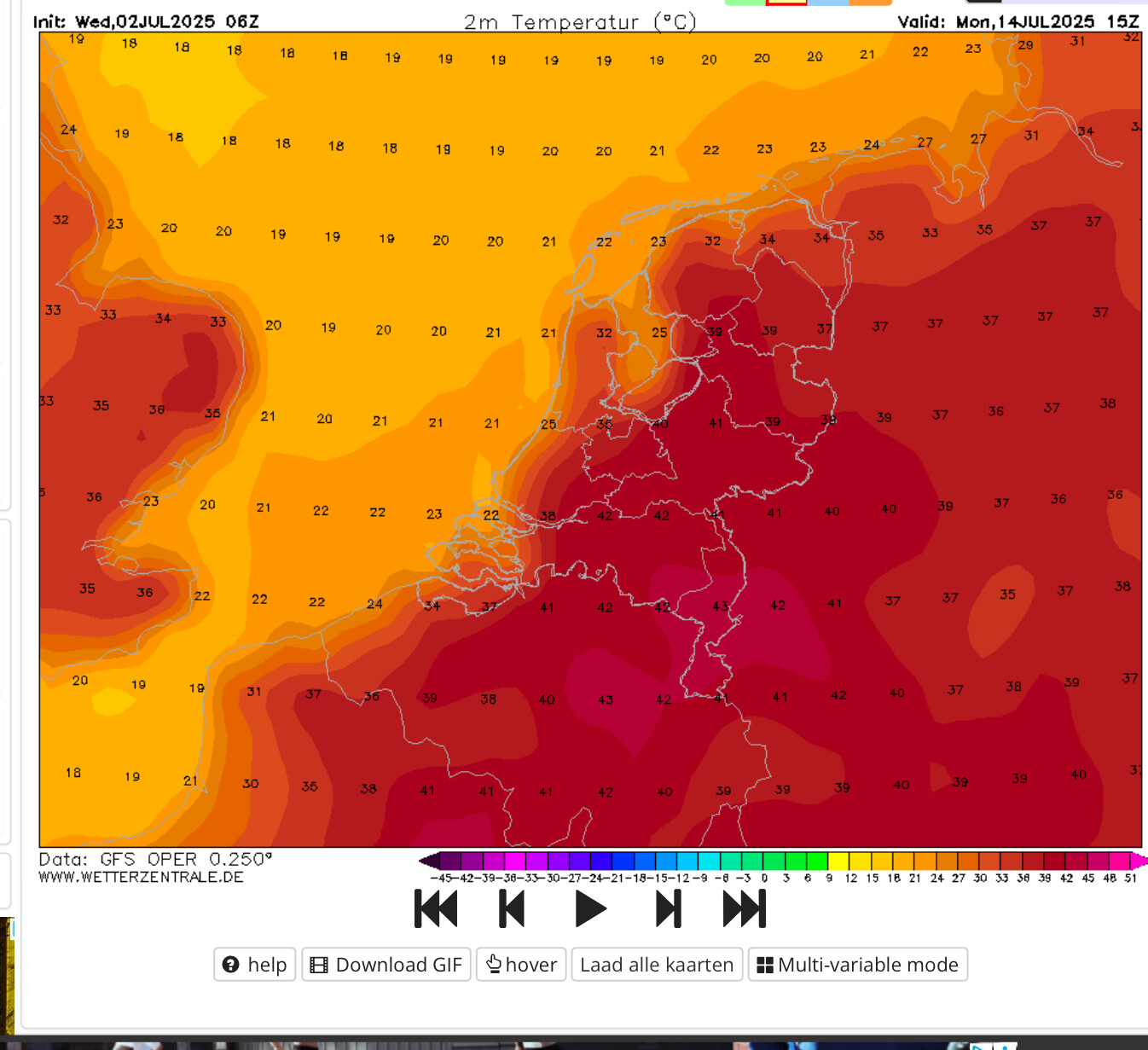 Ja daar komt ie! Op 294 uur! Bovenlucht temperatuur van 20+C en temps van 43C. Belachelijk