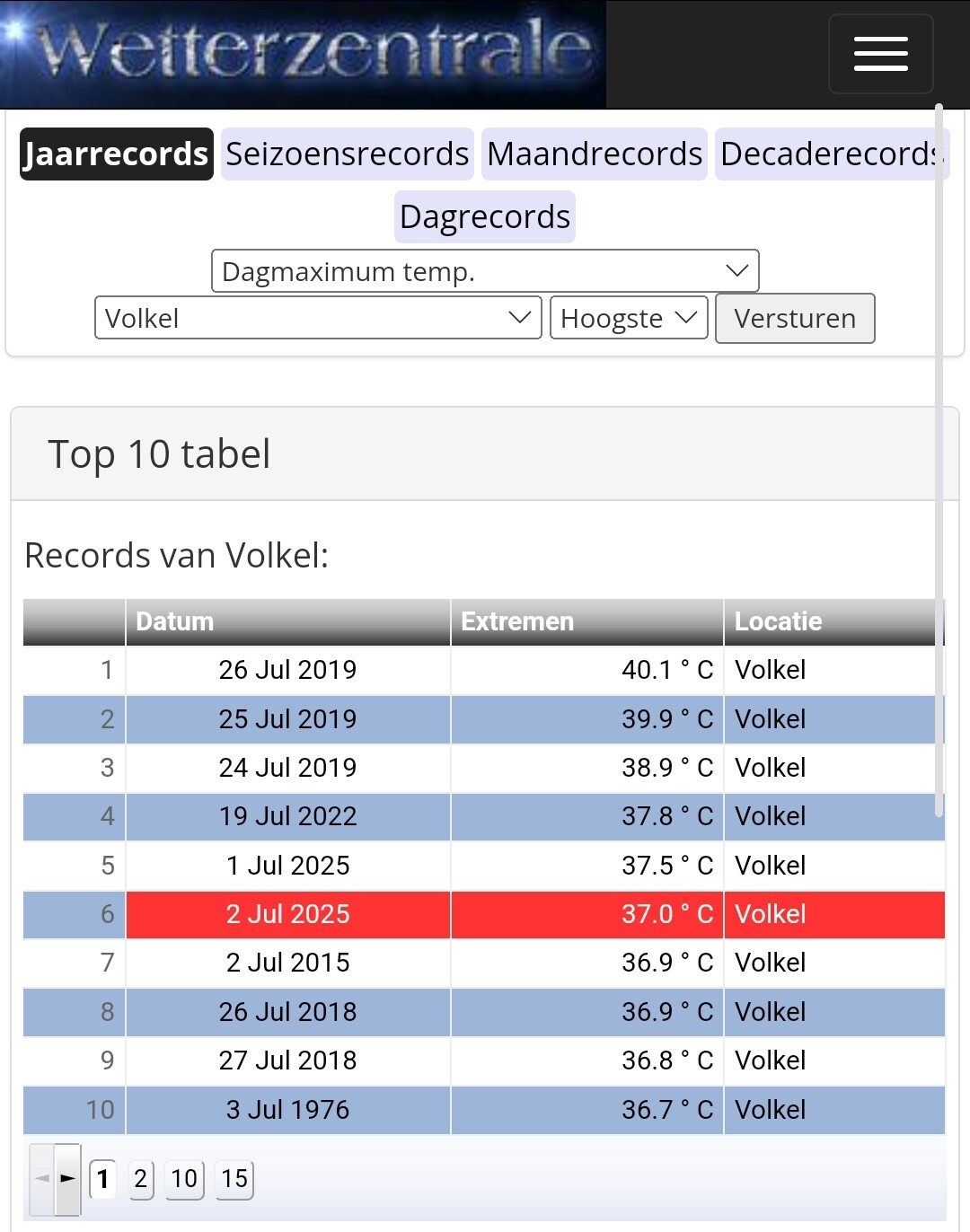 Op vijf na warmste dag uit de meetreeks in Volkel, en gisteren kan verslagen worden. 19 juli 2022 mogelijk ook.