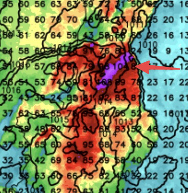 Waarom worden de zwaarste windstoten aan de oostzijde van de buien berekent in Harmonie? Is dat omdat daar de tegenstellingen tussen warm/koud nog het meest aanwezig is? Of heeft het meer te maken met de 'bouw' van de bui?