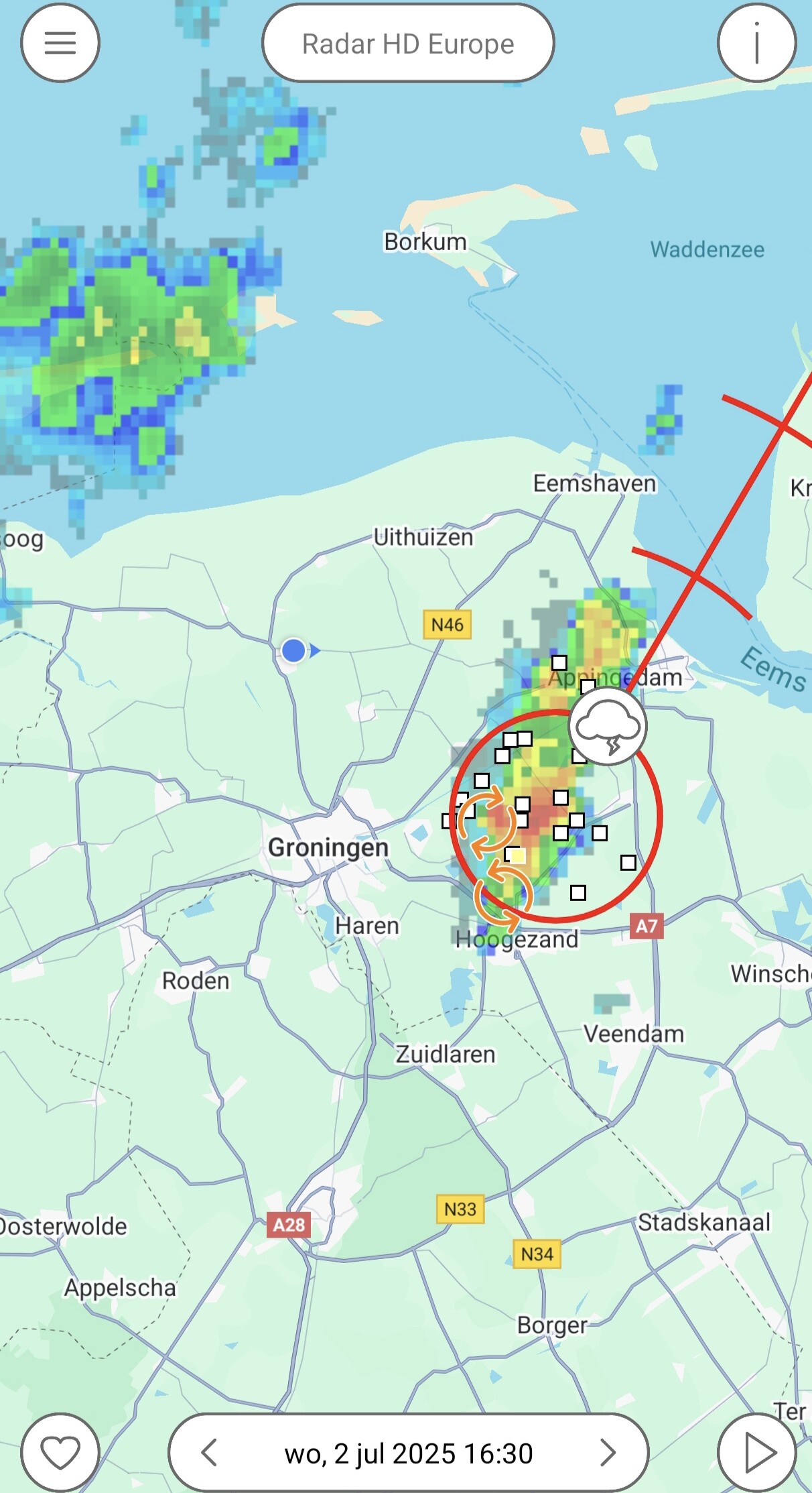 Re: Rozenburg weer droog, plensregen en een paar flinke donders gehad