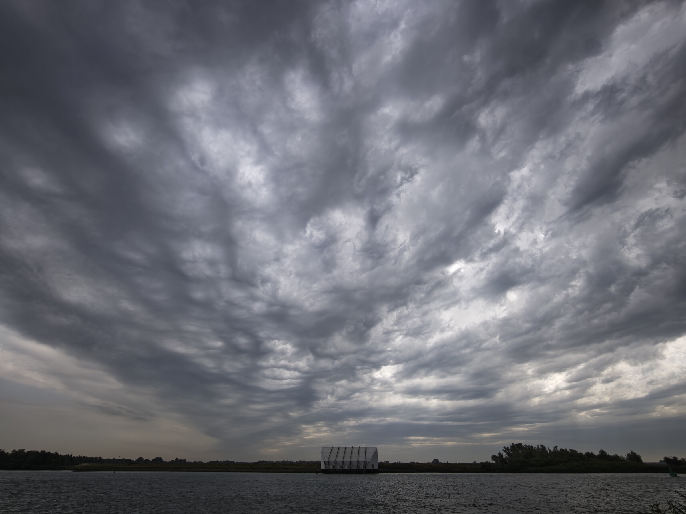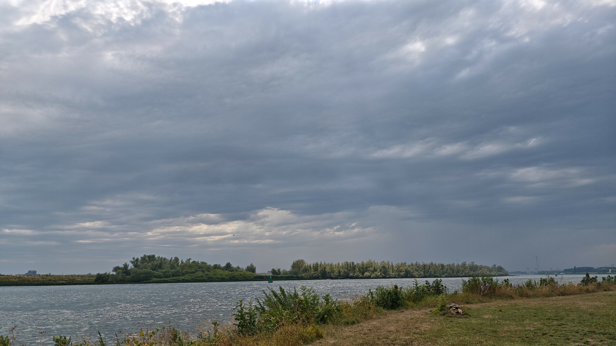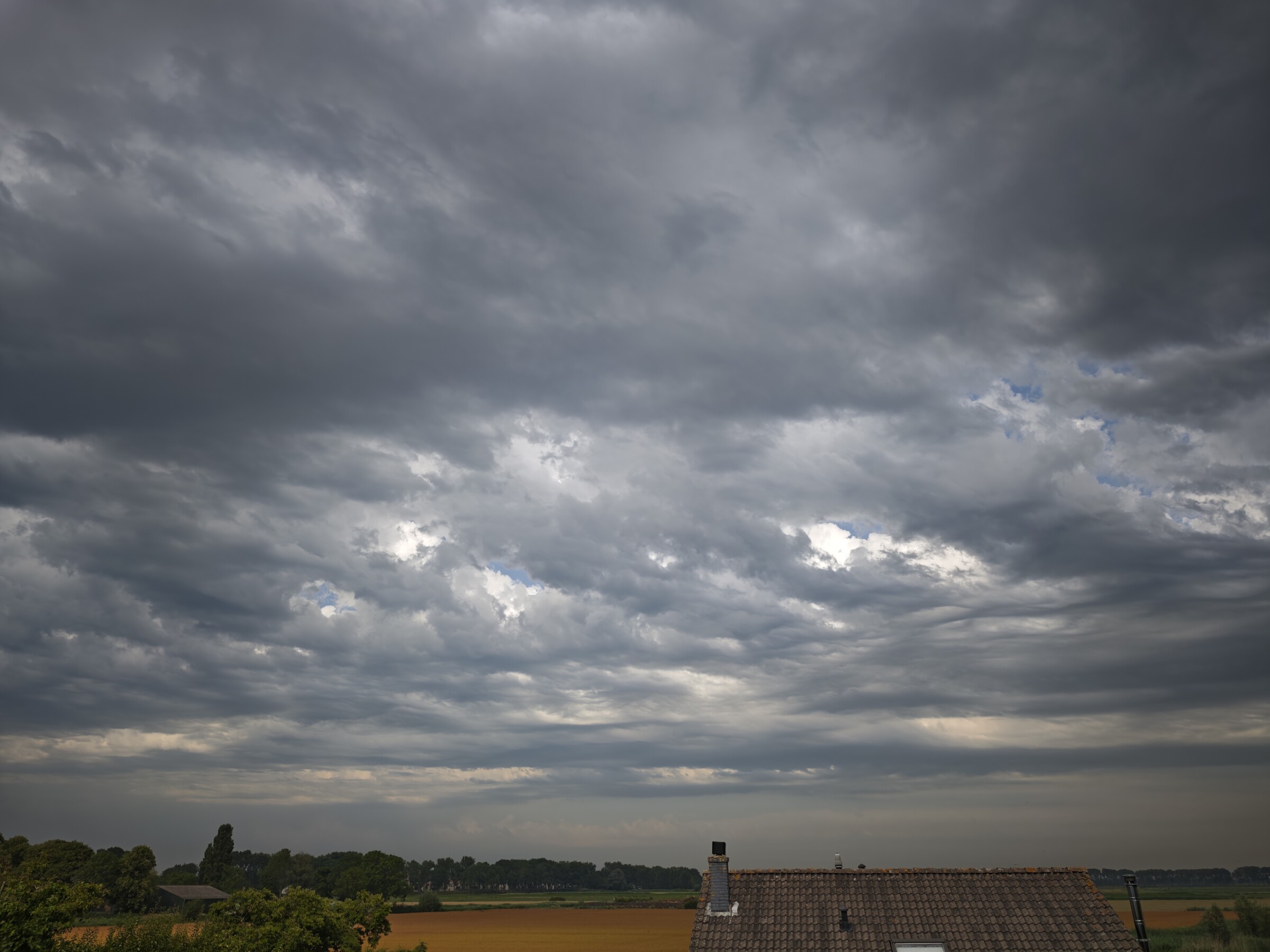 Vanmiddag naar Rhoon gefietst, ipv met de trein naar Winterswijk wat ik eerst van plan was, maar goed ook, anders had ik niet terug kunnen reizen met al die omgewaaide bomen daar, in Rhoon een leuk onweert je gehad met frequent gerommel op hoogte en ook 2 wat hardere cg's, in Schiedam werd ook een donder als ' vrij hard in het westen '.ervaren, misschien van deze inslag, de luchten waren van adembenemende schoonheid, maar ik heb slechts 2.2mm opgevangen.....