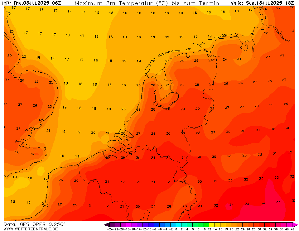 Oper GFS0306: zondag 13 juli, zomers tot tropisch