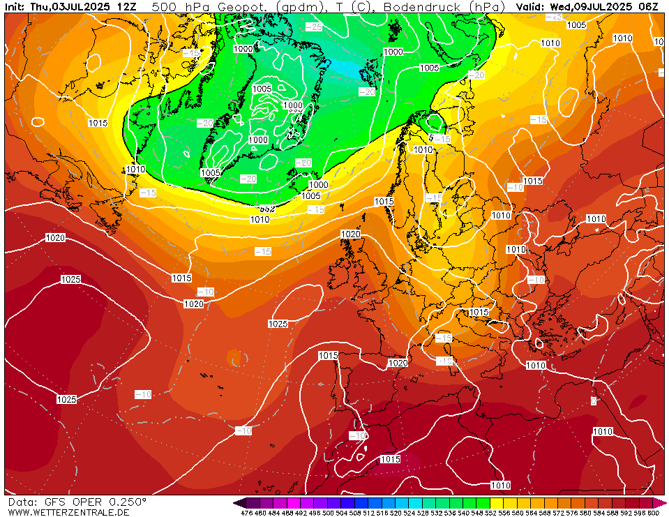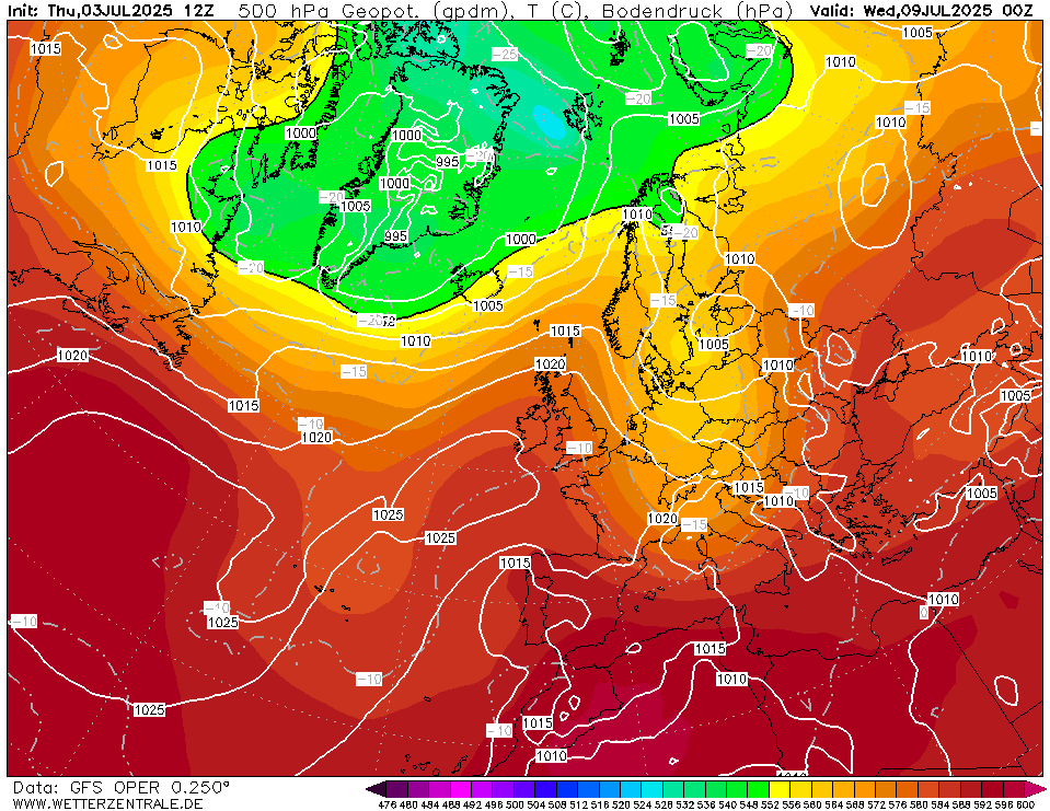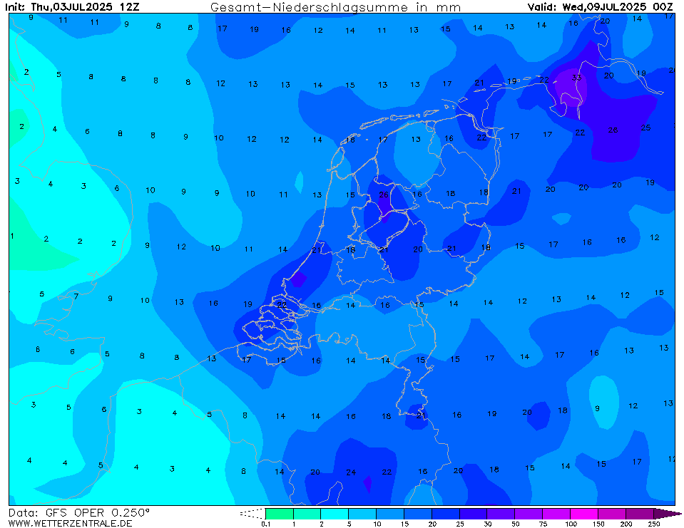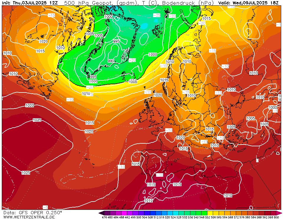 Oper GFS0312: vanaf wo 9 juli weer invloed hogedruk | neerslag omlaag