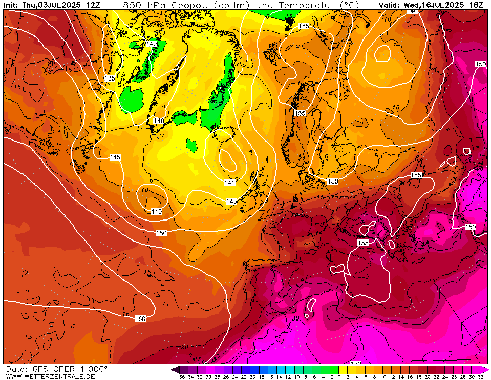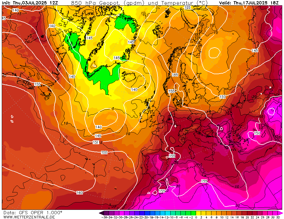 Daarna opnieuw snel zachte tot warme dagen op 850 hectopascal
