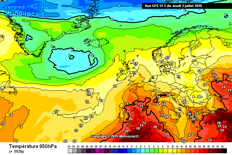 Op +192h, dus net na passage koelere bovenluchten warmt het alweer razendsnel op en nog geen week later zit er een massief gebied met >20°C tot aan Centraal-Europa toe.