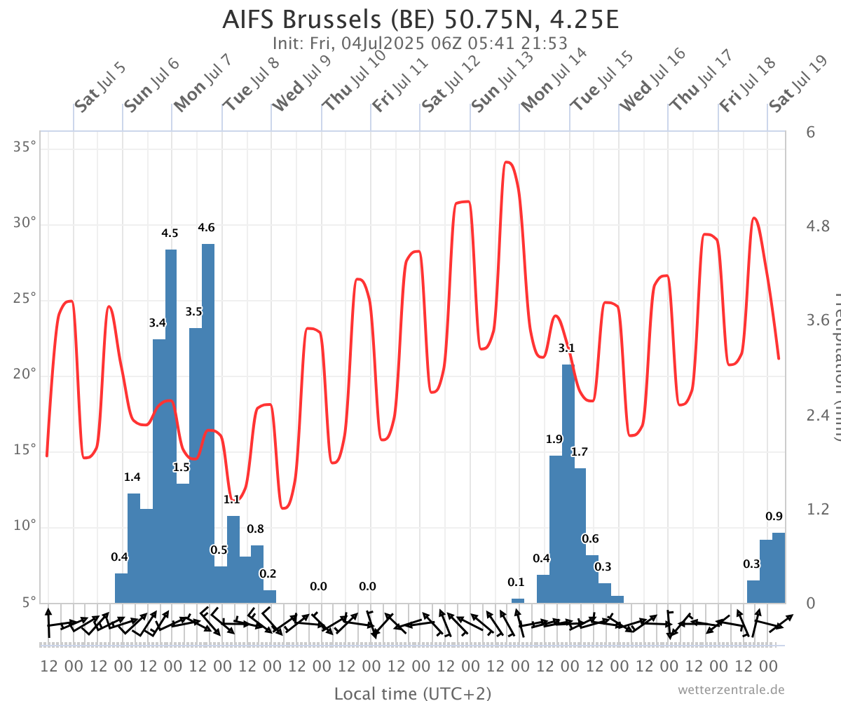 2 zekere tropische dagen op 12 en 13 juli volgens deze oper run.