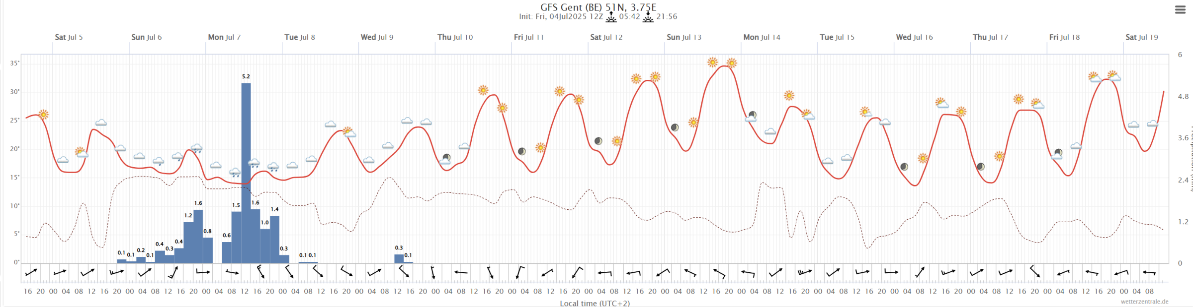 een tiental liter, misschien 15 als het meezit, maar ik zie het evengoed nog minderen. Dan tot voorbij 19/7 niks meer :o