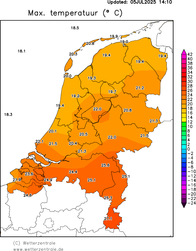 alweer een zomerse dag is gerealiseerd. En Maastricht 27 graden.. noord elijk deel Nederland blijft echt achter.