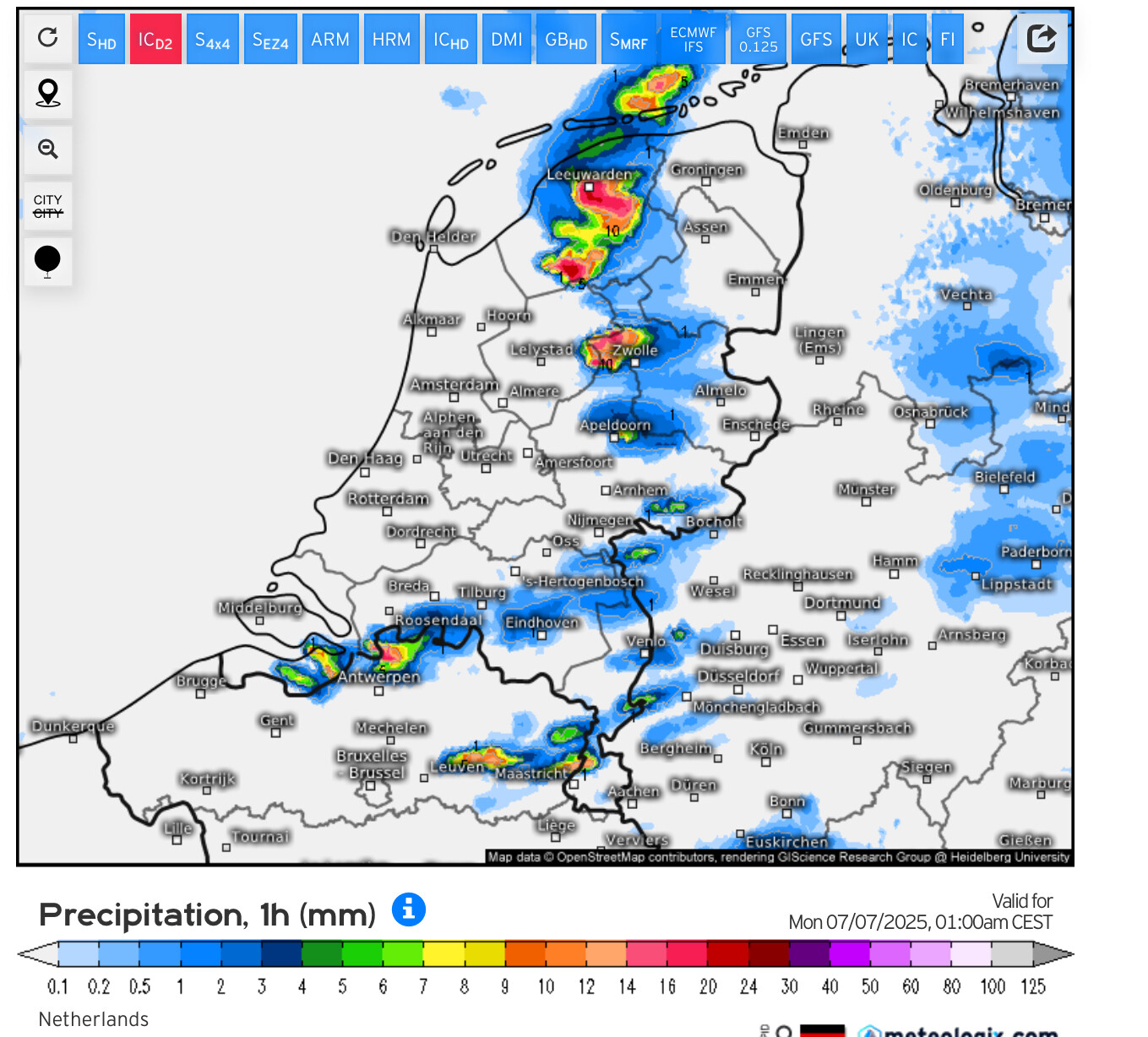 Morgen wat onweersbuitjes verspreid over de Benelux?