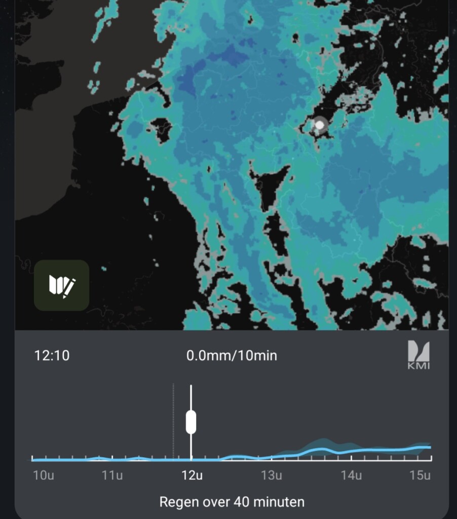 16,5 mm nu en het regent nog door. Arome gaat voor 30-40 mm hier.