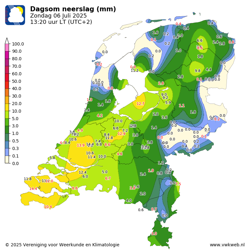De Bilt doet ook goed mee. Nact 7,2 mm